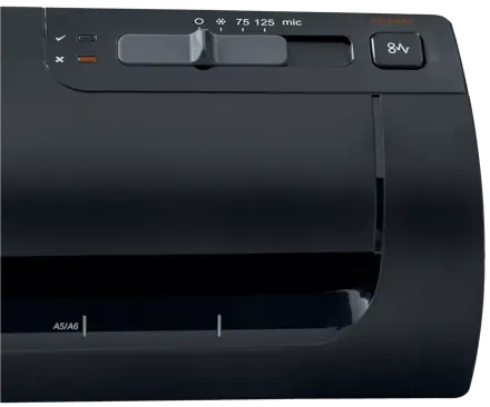Einfacher geht's nicht! Das schicke, kompakte GBC Fusion™ Laminiergerät 1100L A3 ist ideal für alle, die nur gelegentlich etwas zu laminieren haben. Eine grüne Leuchte und ein Signalton zeigen an, wenn das Gerät nach nur dreiminütiger Aufwärmzeit betriebsbereit ist. Es laminiert mit Standardfolientaschen (2 x 75 bis 2 x 125 Mikron) in weniger als einer Minute Dokumente vom Visitenkarten-Größe bis zum DIN-A3-Format. Falsch eingezogene Laminiertaschen können per Freigabetaste entnommen werden. Eine Abschaltautomatik reduziert den Energieverbrauch.
